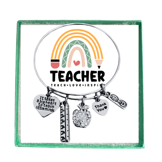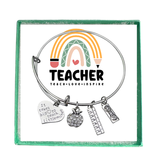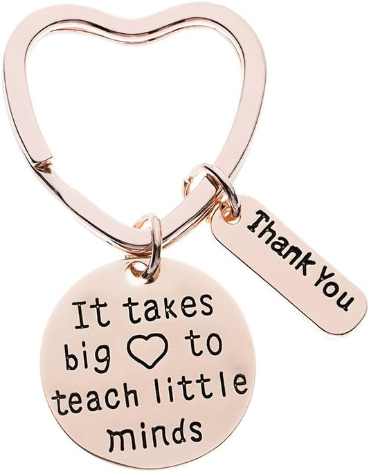 Teacher Charm Keychain, It Takes Big Heart to Teach Little Minds Rose Gold Jewelry