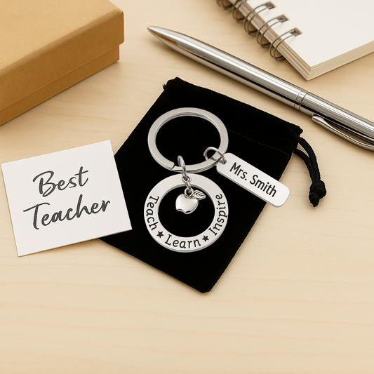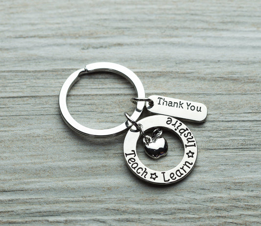 Personalized Teacher Keychain with Engraved Name Charm, Custom Teacher Jewelry, Teacher Gift - Show Your Teacher Appreciation
