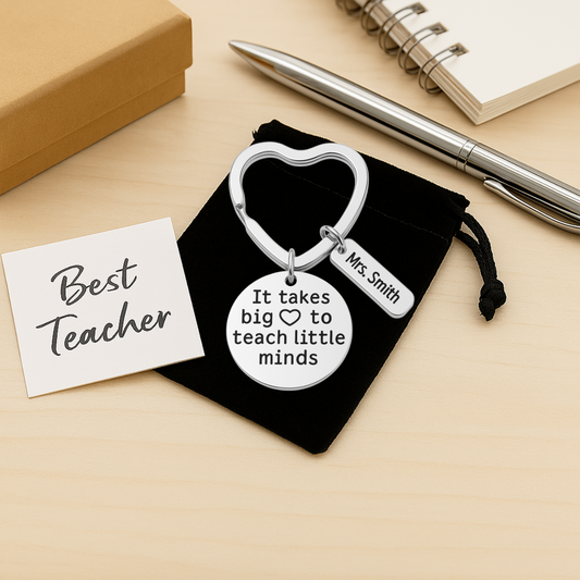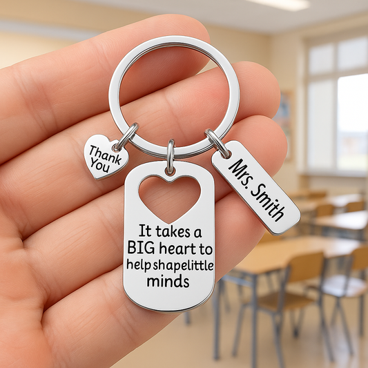 Personalized Teacher Keychain with Engraved Name Charm, It takes a Big Heart to Teach Little Minds Jewelry