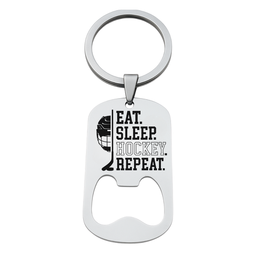 Hockey Keychain - Eat Sleep Hockey Repeat - Pick Shape