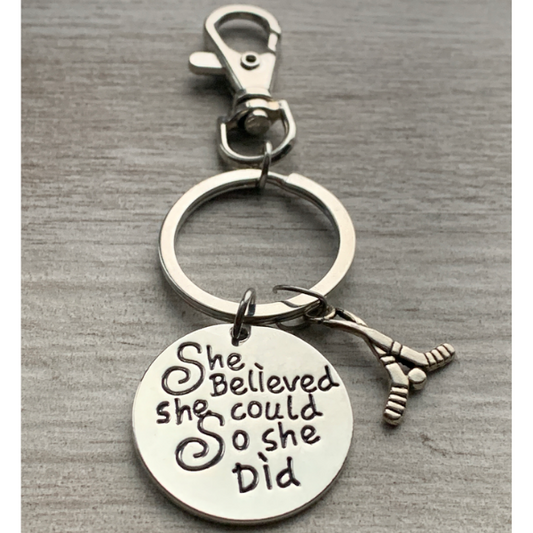 Ice Hockey Keychain - She Believed She Could So She Did Zipper Pull