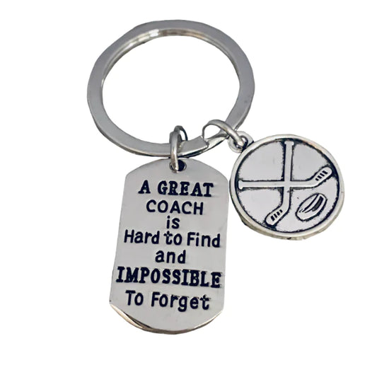 Ice Hockey Coach Keychain, Great Coach is Hard to Find Coach Keychain