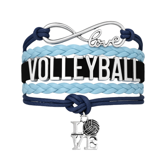 Girls Volleyball Blue and Black Infinity Bracelet - Pick Charm