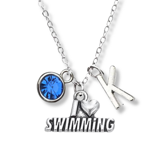 Personalized Girls Swim Necklace with Birthstone & Letter Charm