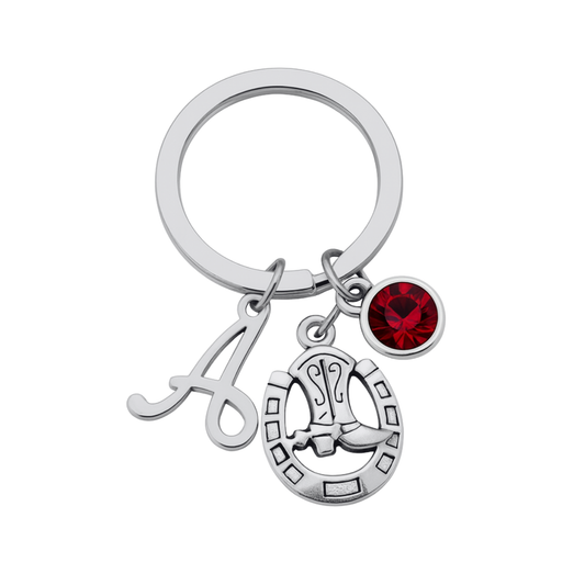 Personalized Horse Keychain with Birthstone & Letter Charm