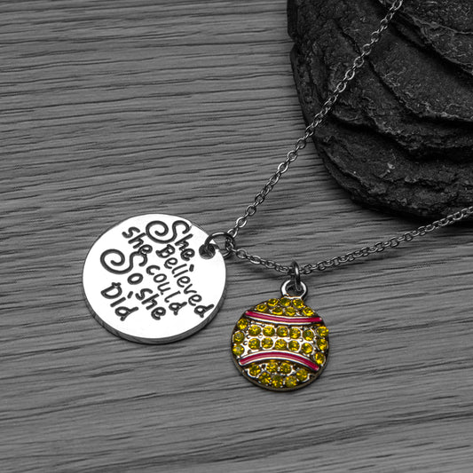 Softball Necklace - She Believed She Could So She Did with Rhinestone Charm