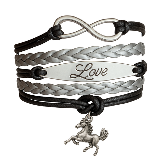 Horse Black Infinity Charm Bracelet - Pick Charm