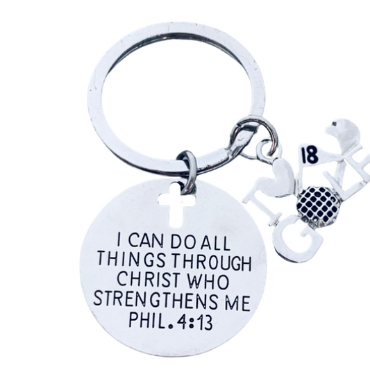 Golf I Can Do All Things Through Christ Who Strengthens Me Phil. 4:13 Charm Keychain