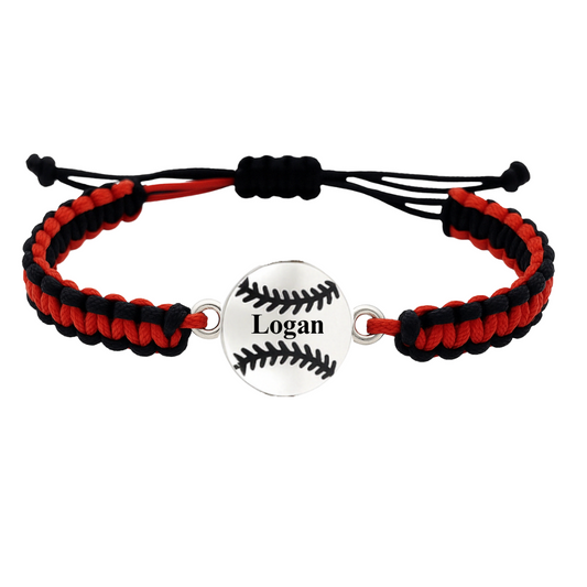 Personalized Multi Colored Baseball Charm Connector Rope Bracelet - Pick Colors