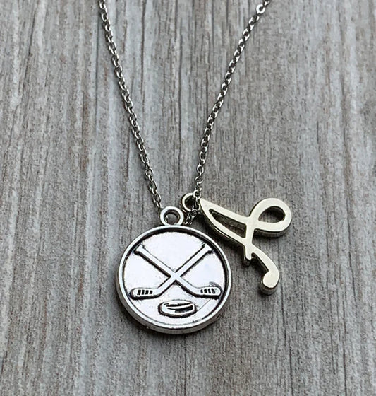 Personalized Ice Hockey Stick Necklace with Letter Charm