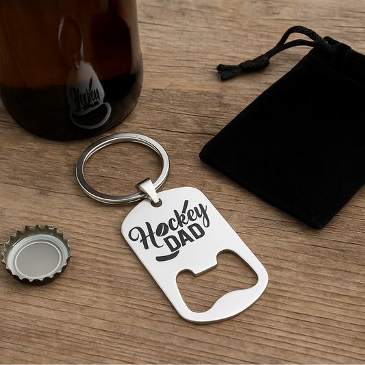 Ice Hockey Dad Stainless Steel Bottle Opener Keychain