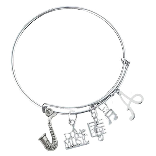 Personalized Saxophone Charm Bangle Bracelet with Birthstone