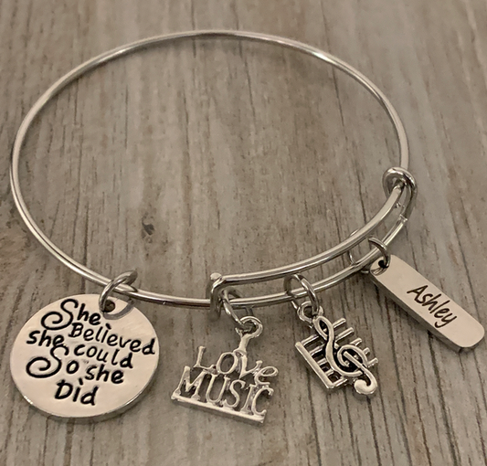 Personalized Music She Did Bangle Bracelet