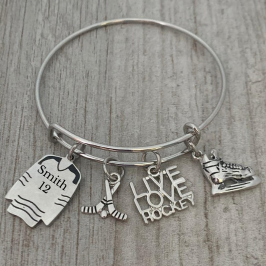 Personalized Engraved Ice Hockey Bangle Bracelet