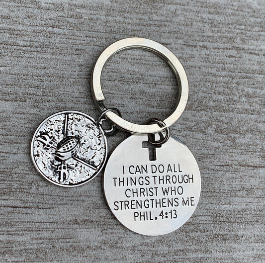 Fencing Charm Keychain, Christian Faith I Can Do All Things Through Christ Who Strengthens Me Phil. 4:13 Scripture Jewelry