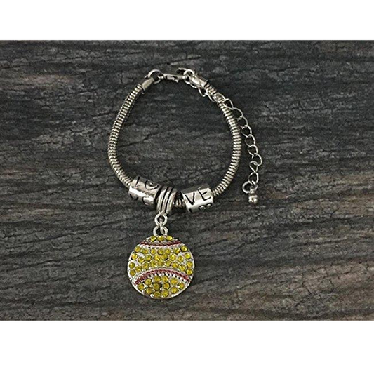 Softball Rhinestone Charm Bracelet