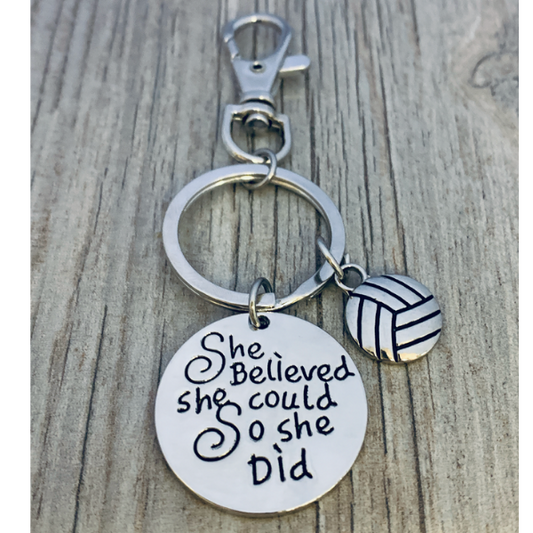 Volleyball Zipper Pull Keychain - She Believed She Could So She Did