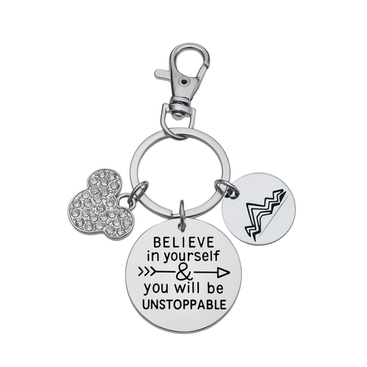 Cheer Believe in Yourself Zipper Pull Keychain - D2, Summit, Worlds Gift