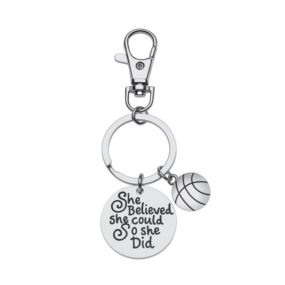 đBASKETBALL KEYCHAIN- Silver plated She Believed She Could So She Did Basketball charm on zipper pull key ring