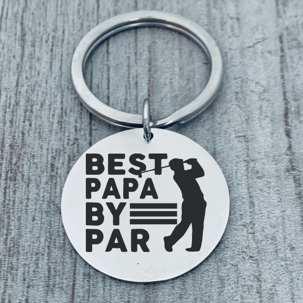 - PAPA KEYCHAIN - Stainless Steel Best Papa By Par Keychain. Stainless steel won't rust, tarnish or change colors.