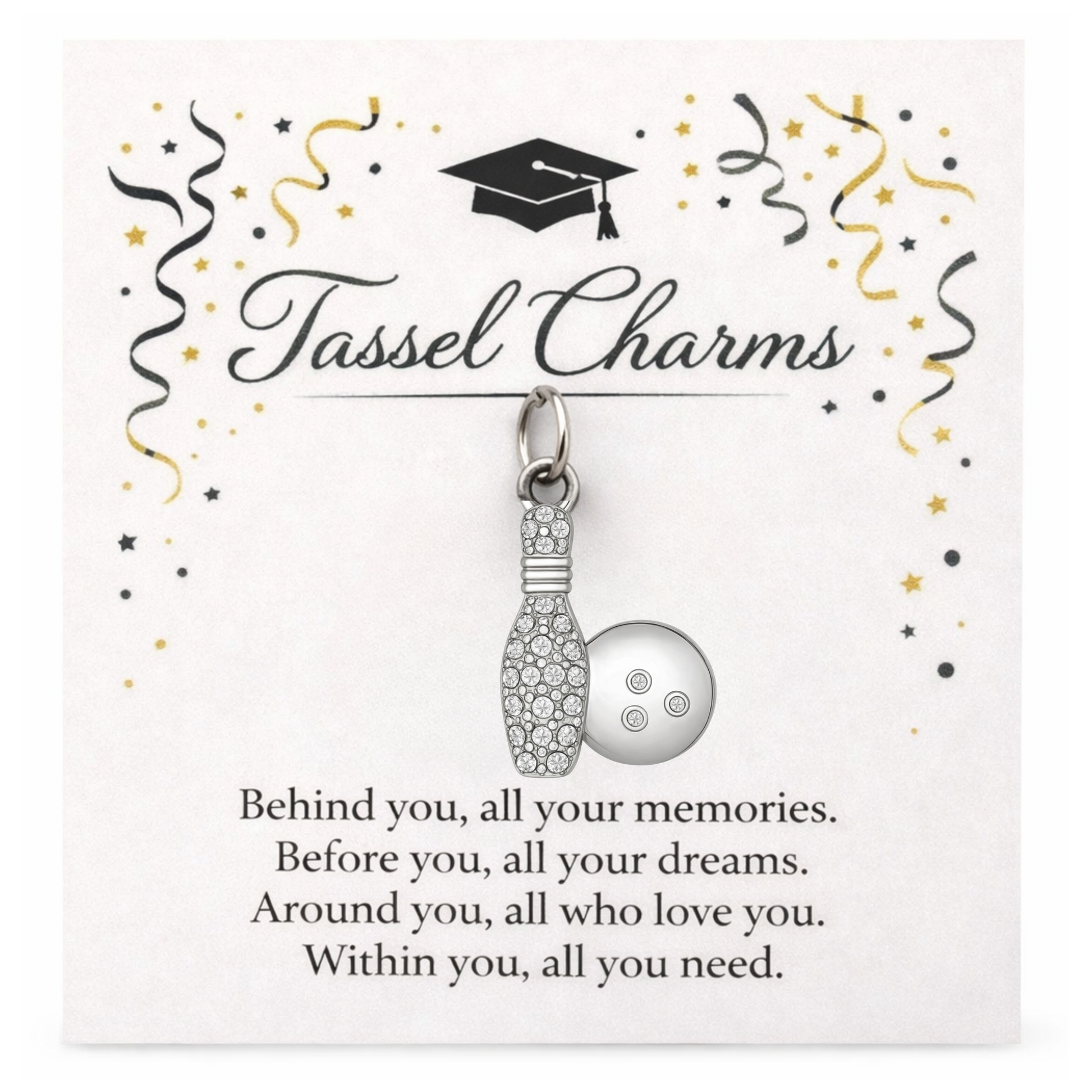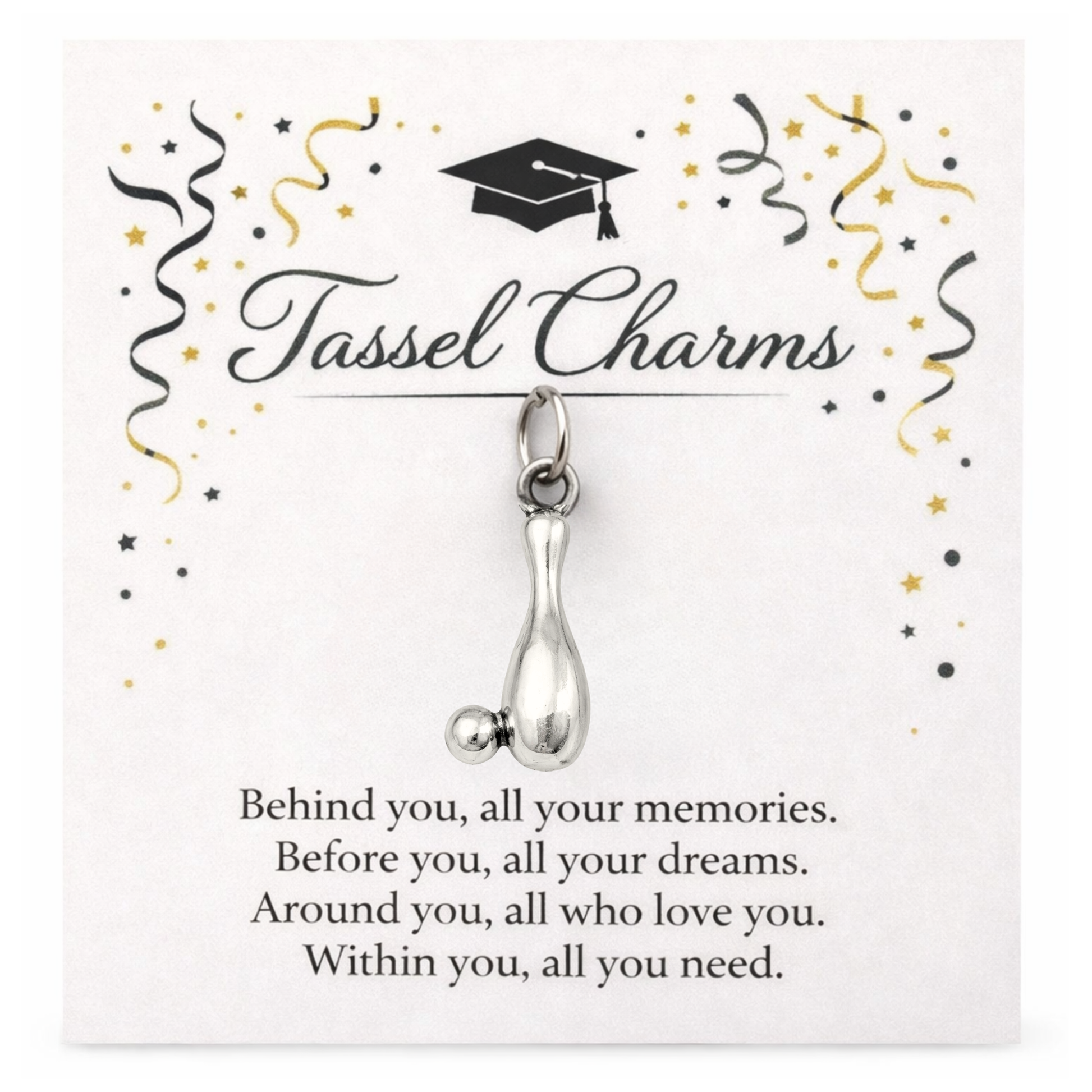 This bowling tassel charm honors league nights, tournaments, team victories, and personal best games. It clips easily onto a graduation tassel and becomes a meaningful keepsake long after the ceremony.