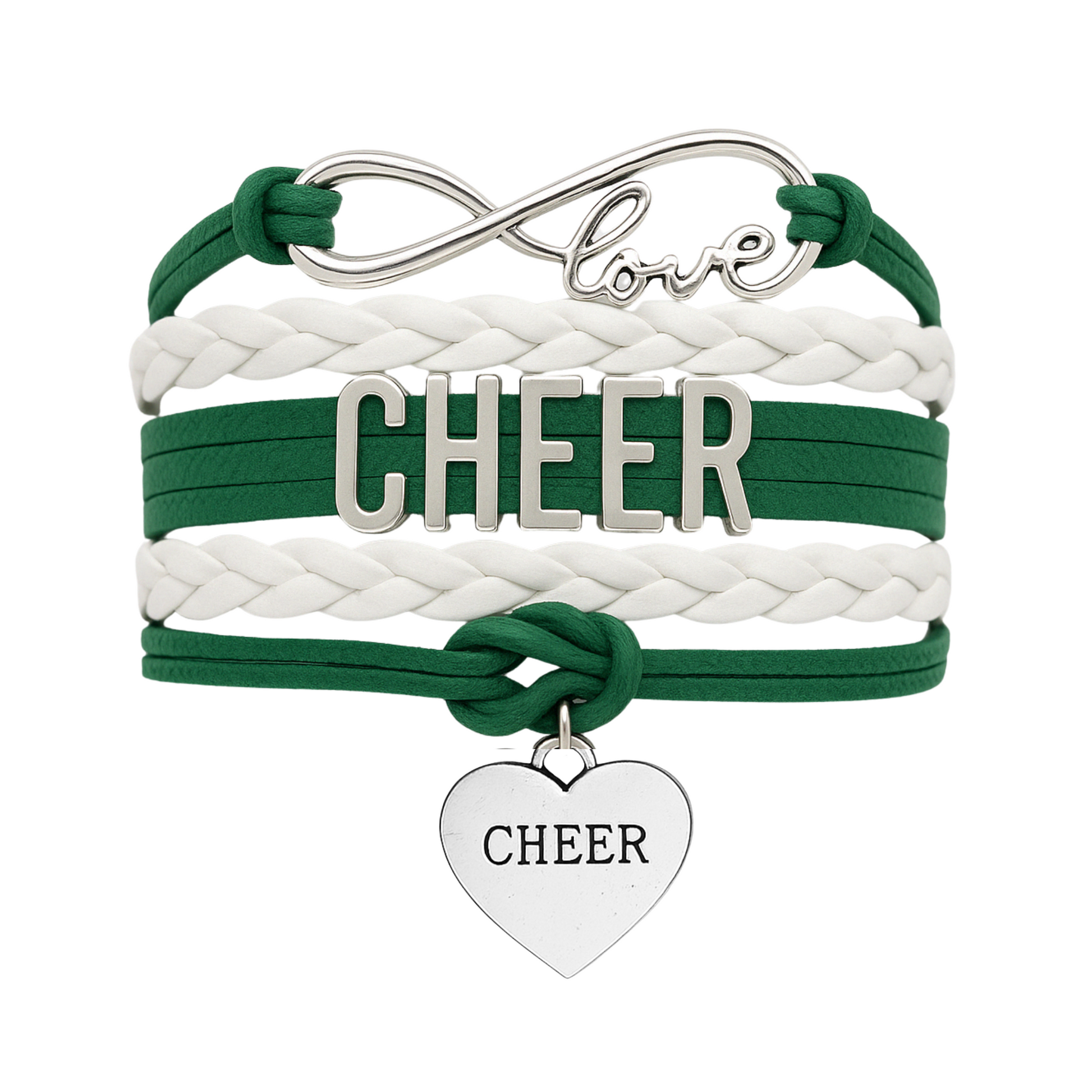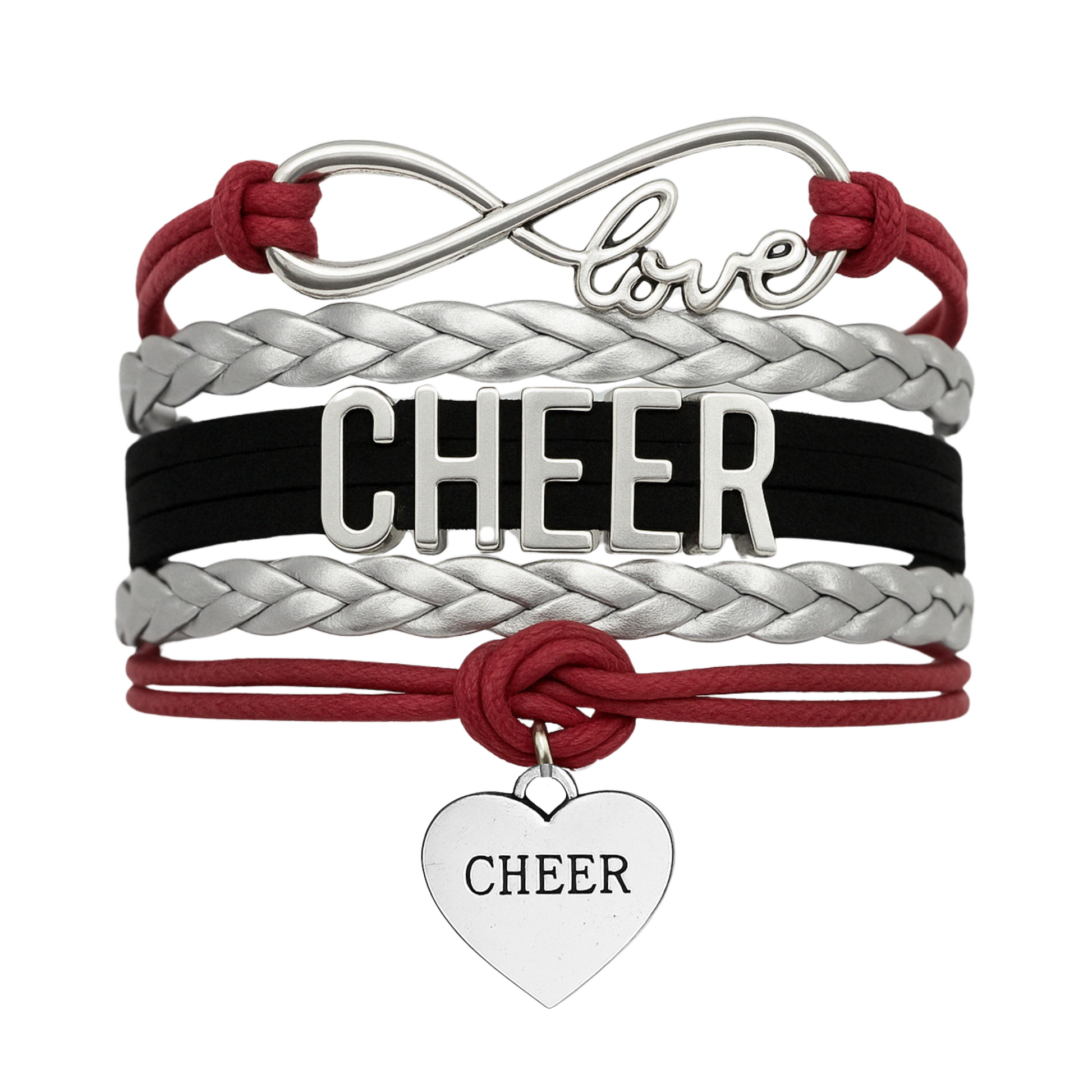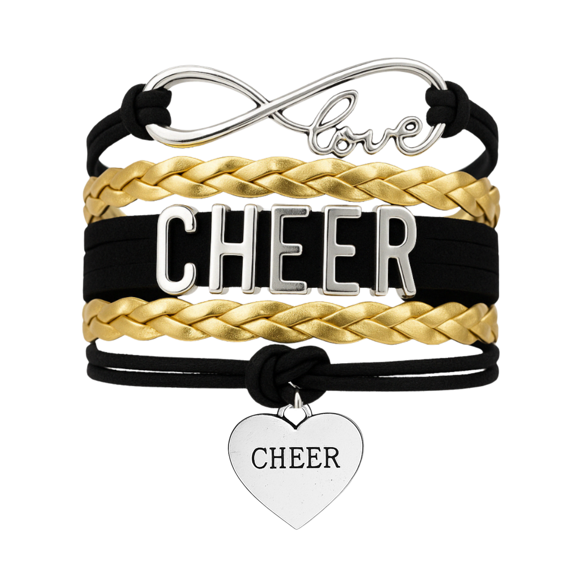 📿 CHARM BRACELET FOR CHEERLEADING: This infinity-style cheer bracelet is adjustable from 5″ to 8″, featuring a secure clasp for a comfortable fit. The design includes “Love” in an infinity charm and “CHEER” in bold movable letters, paired with a cheerleader charm.