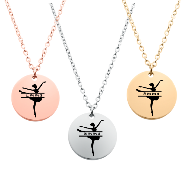 - BALLET NECKLACE - .78 inch charm stainless steel engraved charm on 17 inch stainless steel chain with 2 inch extender