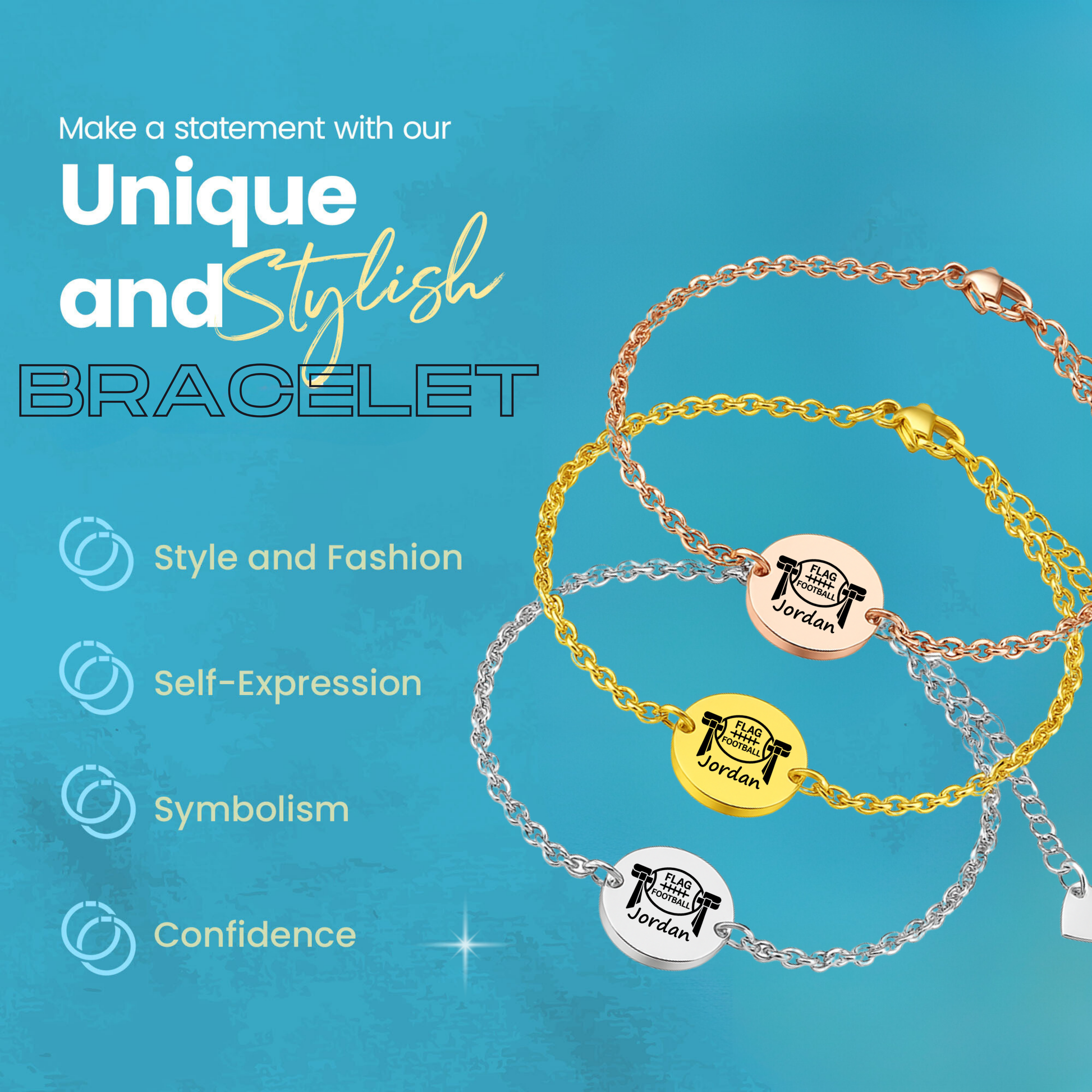 🏈 A timeless keepsake for every flag football player and fan! Celebrate your love for the game with Sportybella’s Personalized Flag Football Bracelet. This elegant stainless steel chain bracelet features an engraved charm with a flag football goalpost design and custom name engraving — making it a perfect, meaningful gift for athletes, coaches, or fans.