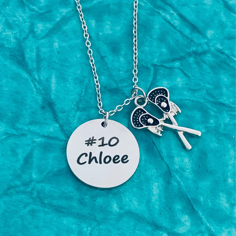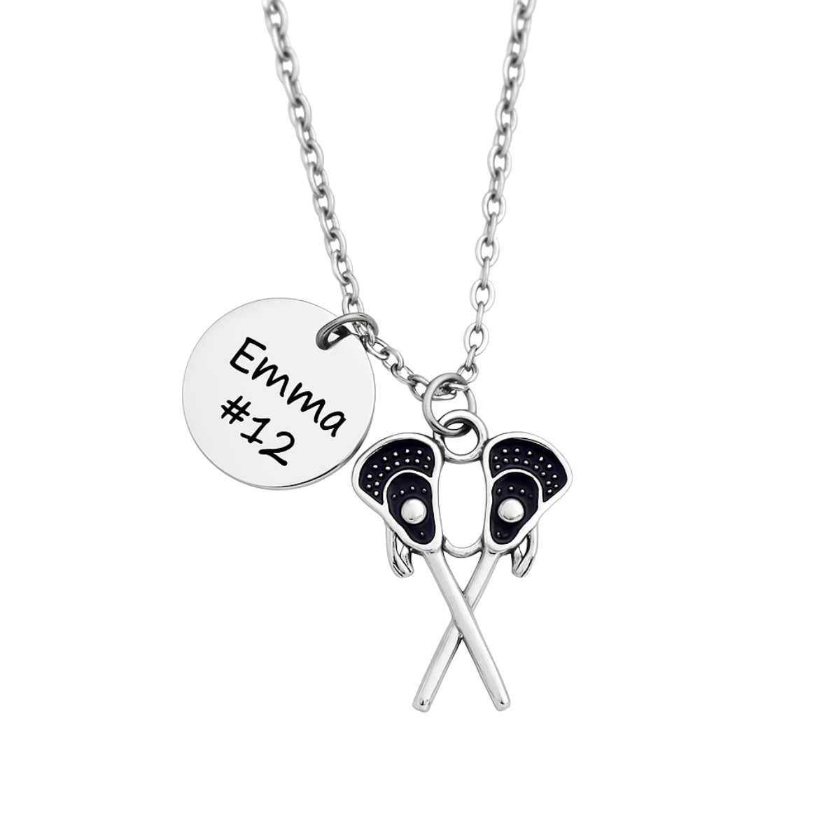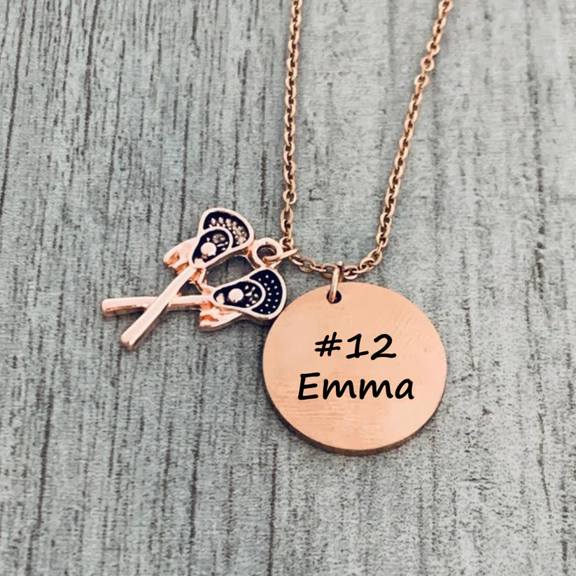 - 🥍LACROSSE NECKLACE - Stainless Steel Engraved charm on 17 inch stainless steel chain with 2 inch extender
