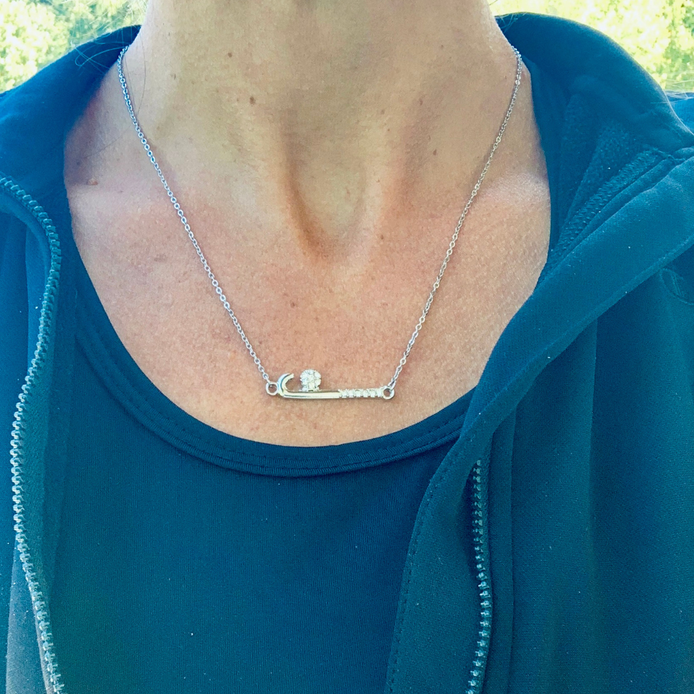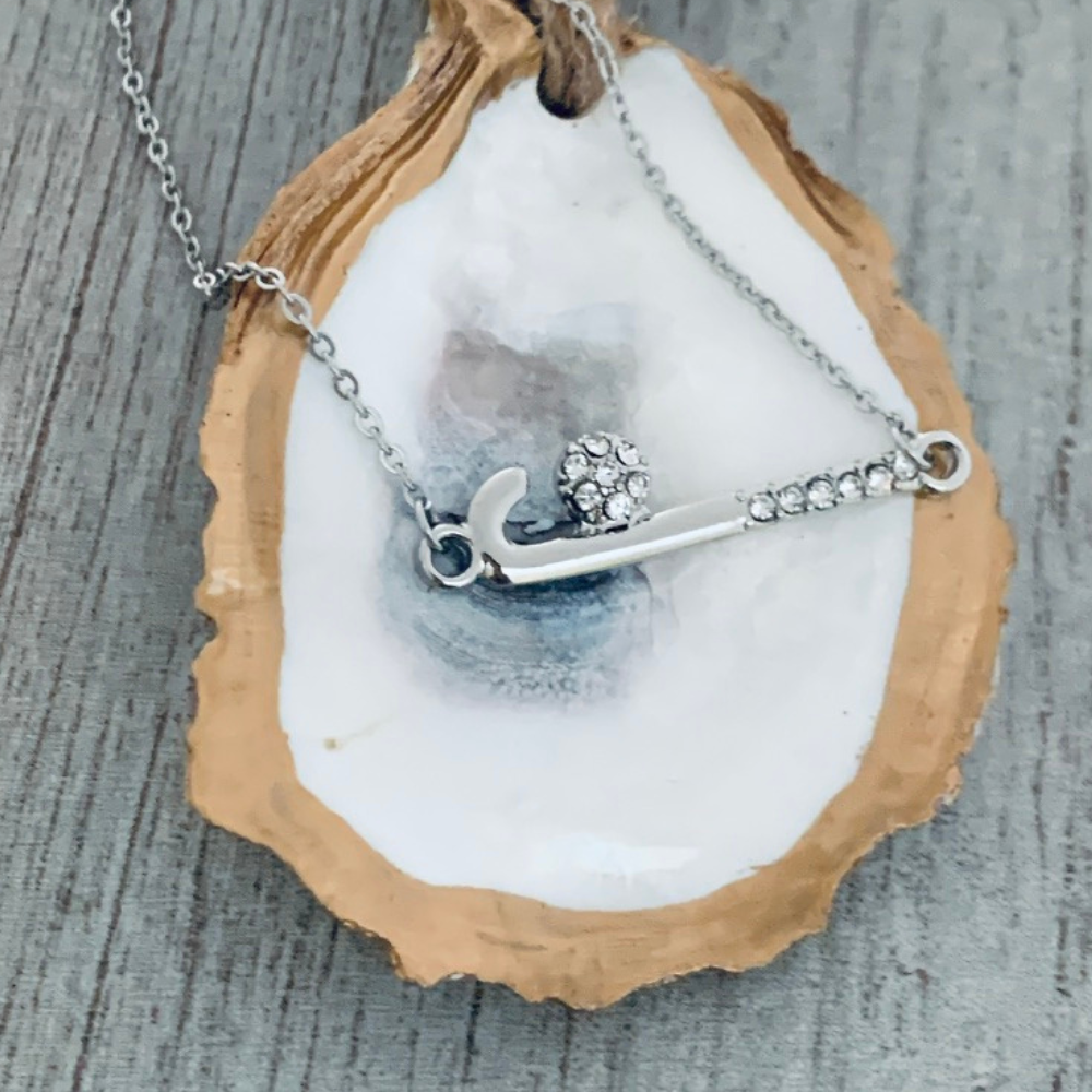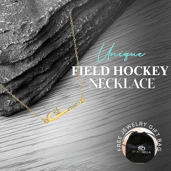 - FIELD HOCKEY NECKLACE - Silver Plated Field hockey stick charm on 18 inch stainless steel chain