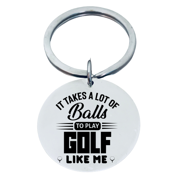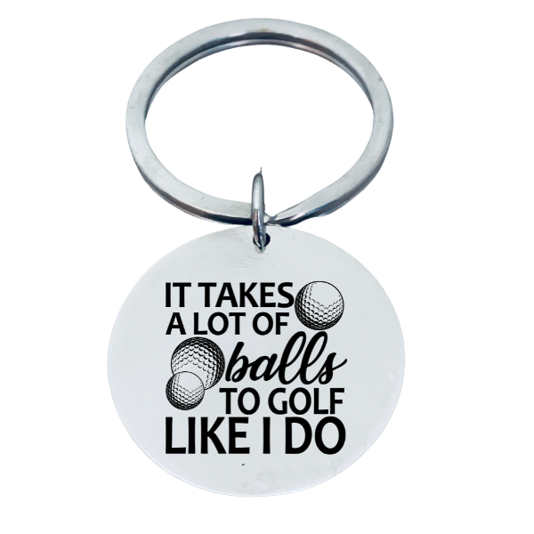 - GOLF KEYCHAIN - Stainless Steel Funny It Takes Alot of Balls Keychain. Stainless steel won't rust, tarnish or change colors.