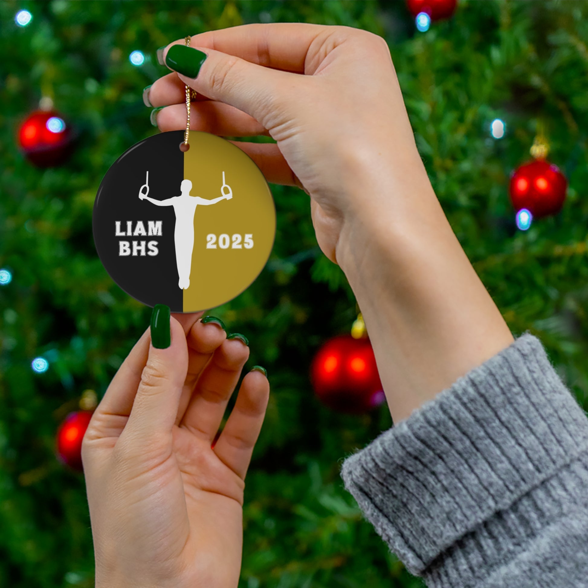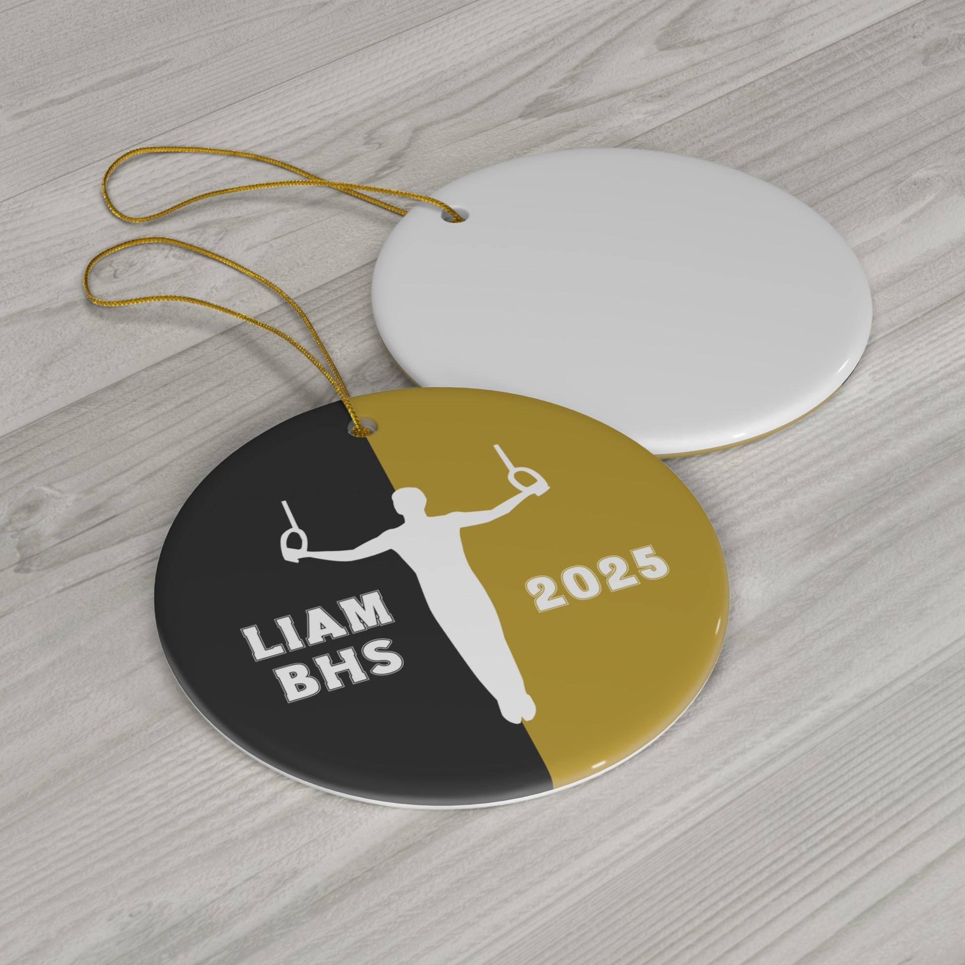 This Ornament is a perfect keepsake for years to come! The design is printed on a flat, round, ceramic ornament 2.84 inches in width. When you order from us, you get the ornament and a gold string loop for hanging. We know you'll love it!