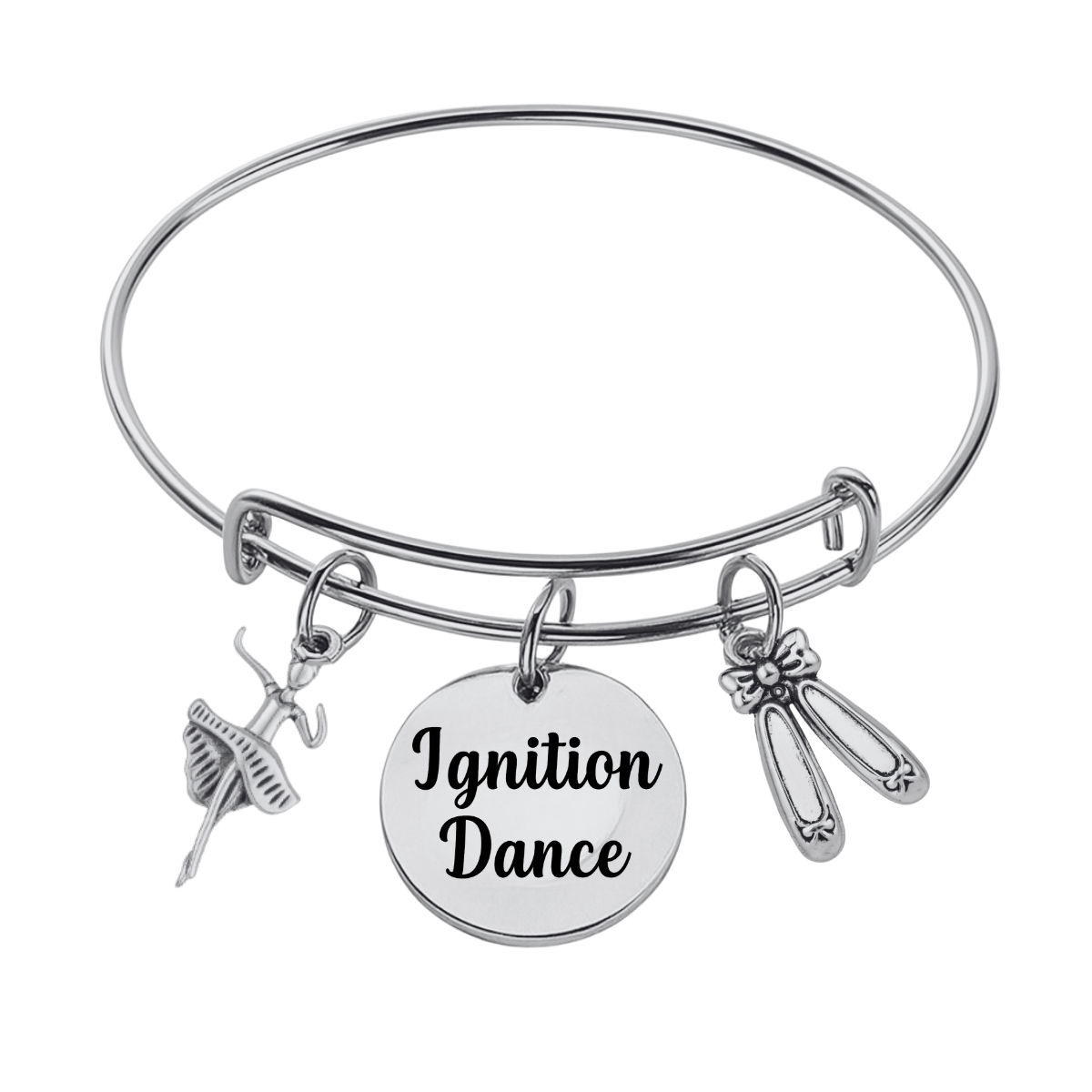 - DANCE BANGLE BRACELET -Custom Girls Stainless Steel Dance Bracelet with Ignition Dance engraved on custom charm