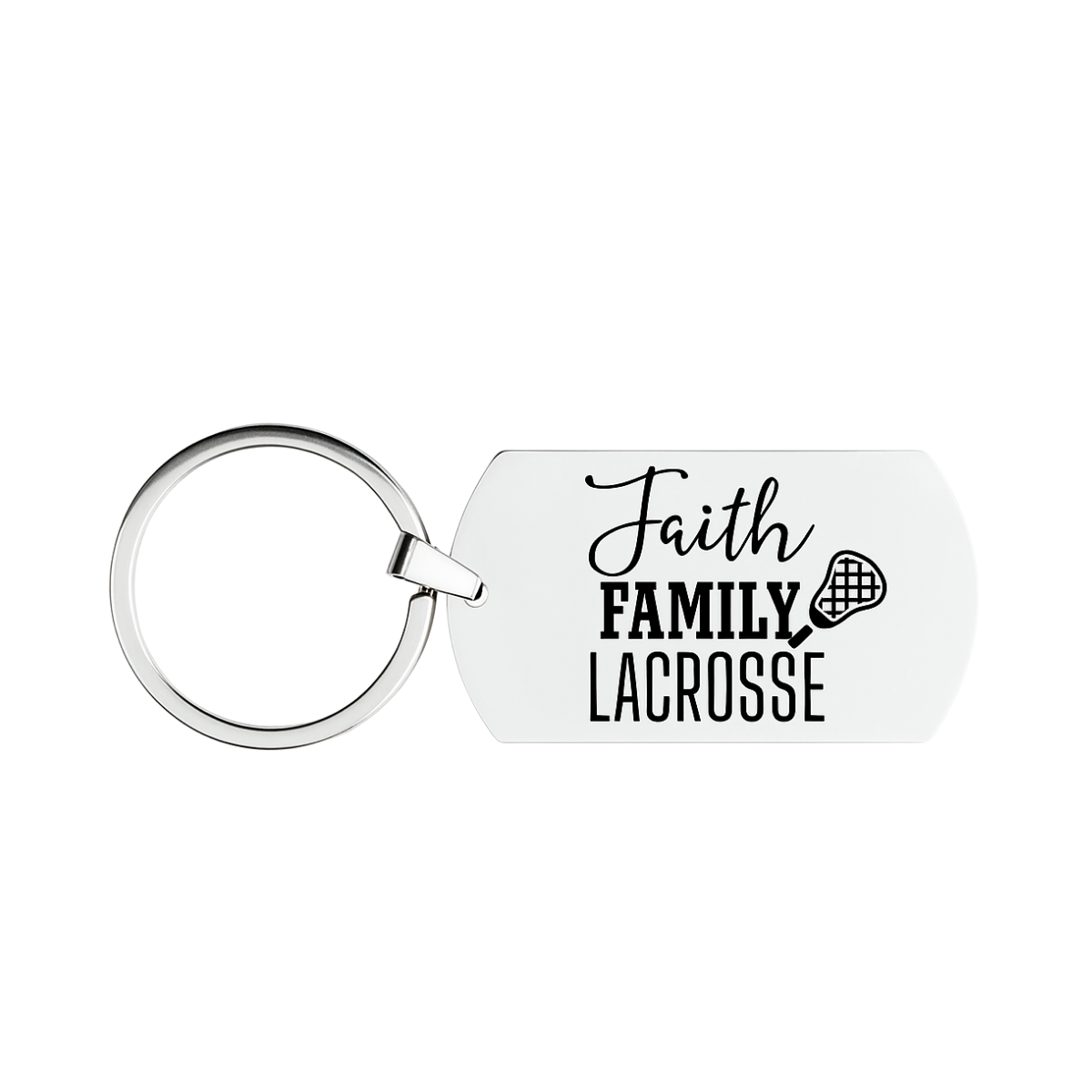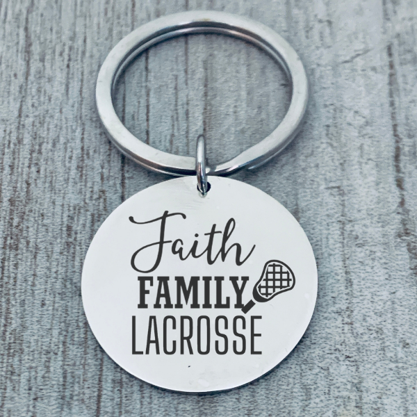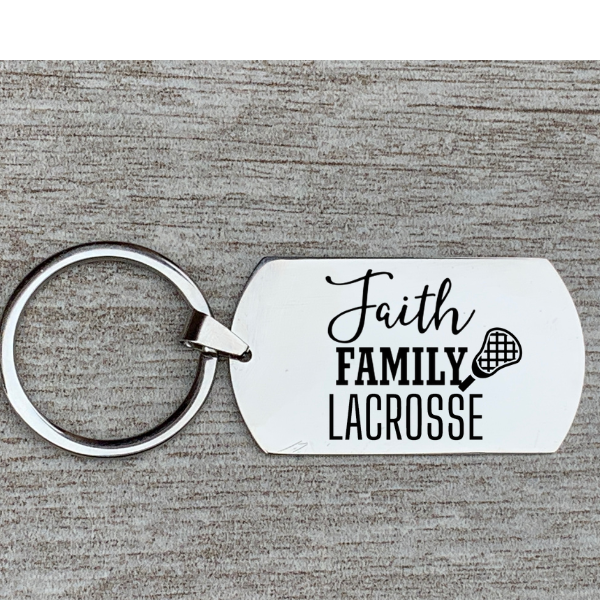 - LACROSSE KEY RING - Stainless Steel Faith Family Lacrosse Keychain. Stainless steel won't rust, tarnish or change colors.