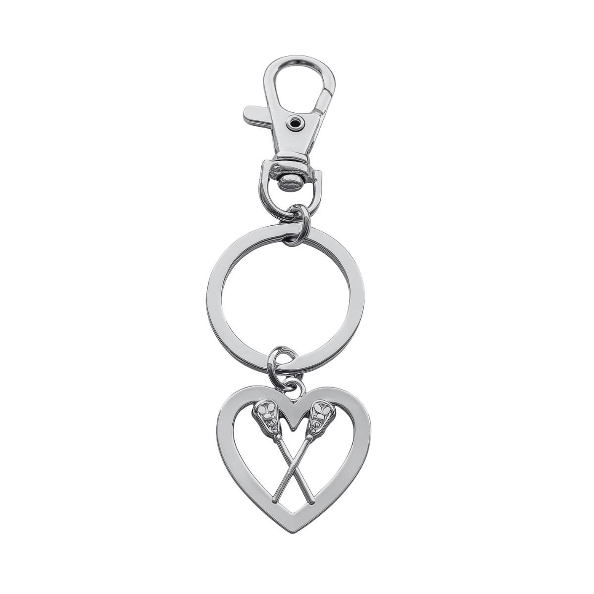 đ„ LACROSSE KEYCHAIN- Silver Plated Lacrosse Stick Heart Lacrosse Charms on Zipper Pull Keychain