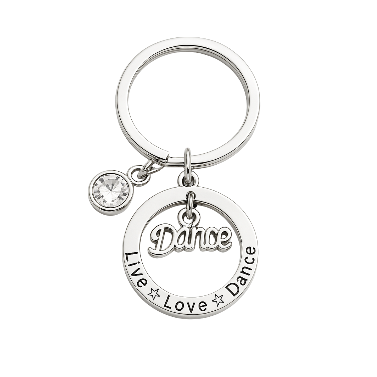 - DANCE JEWELRY KEYCHAIN - Beautiful Silver Plated Dance Live Love Charm Key Chain