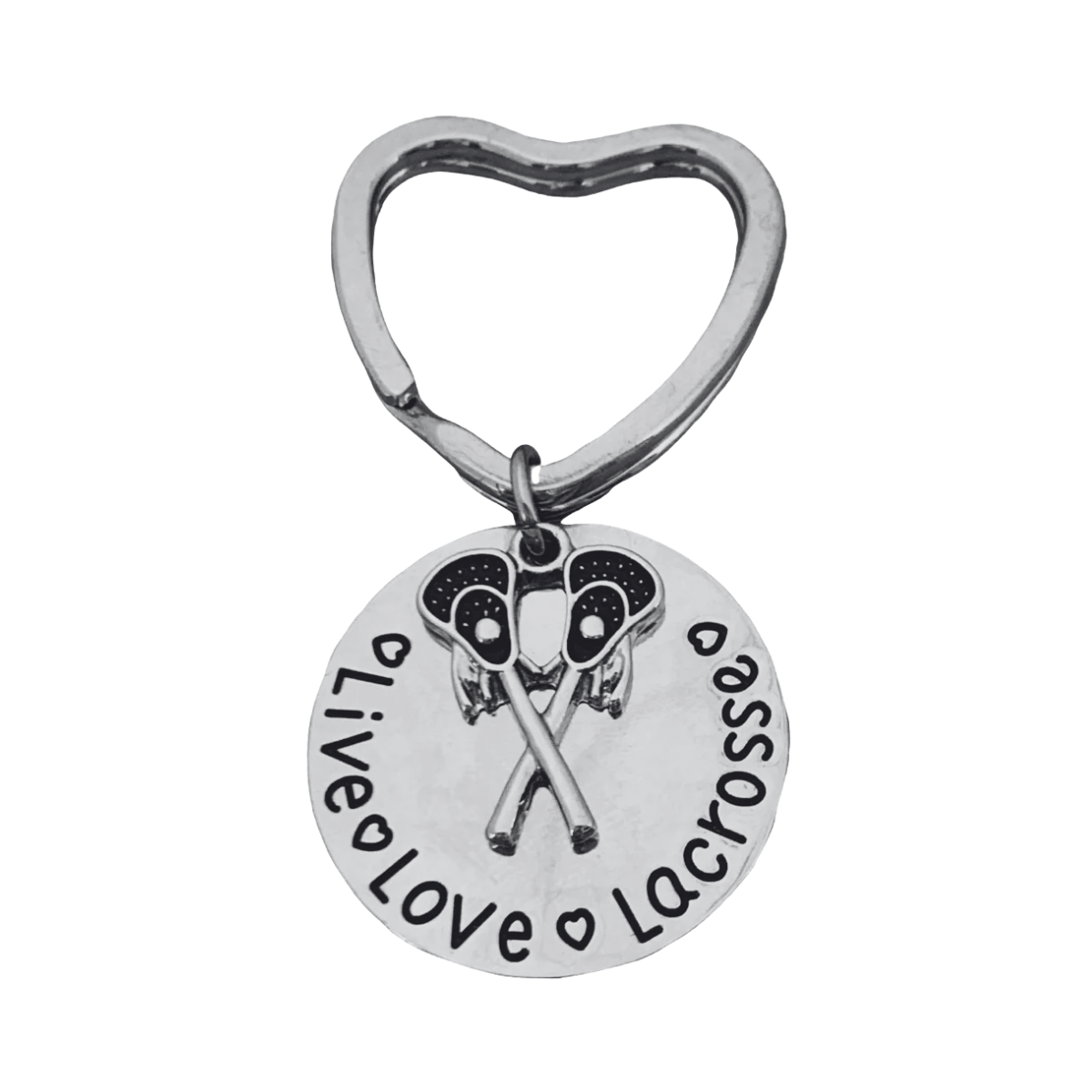 - LACROSSE KEYCHAIN - Silver Plated Girls Live Love Lacrosse Charm on heart key ring