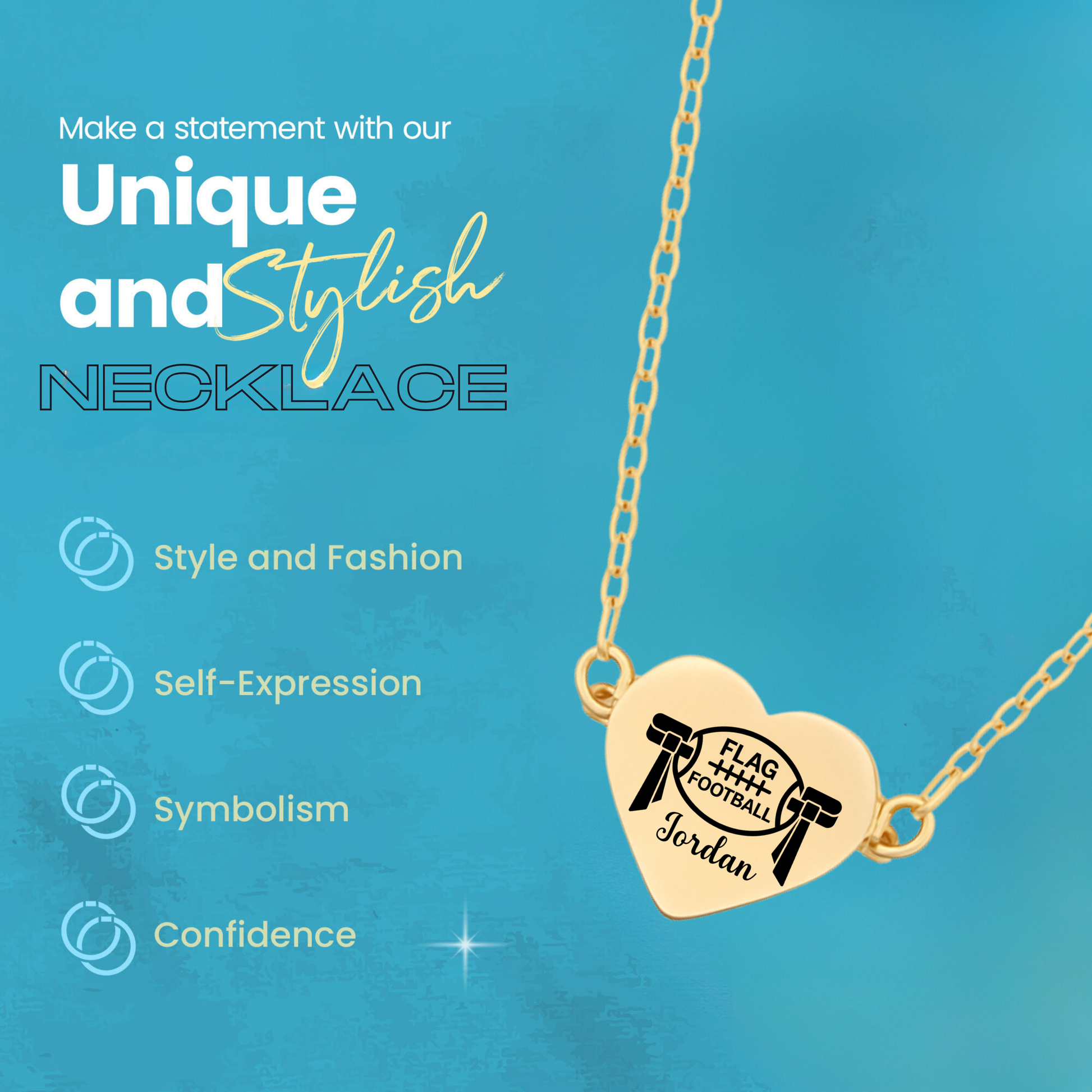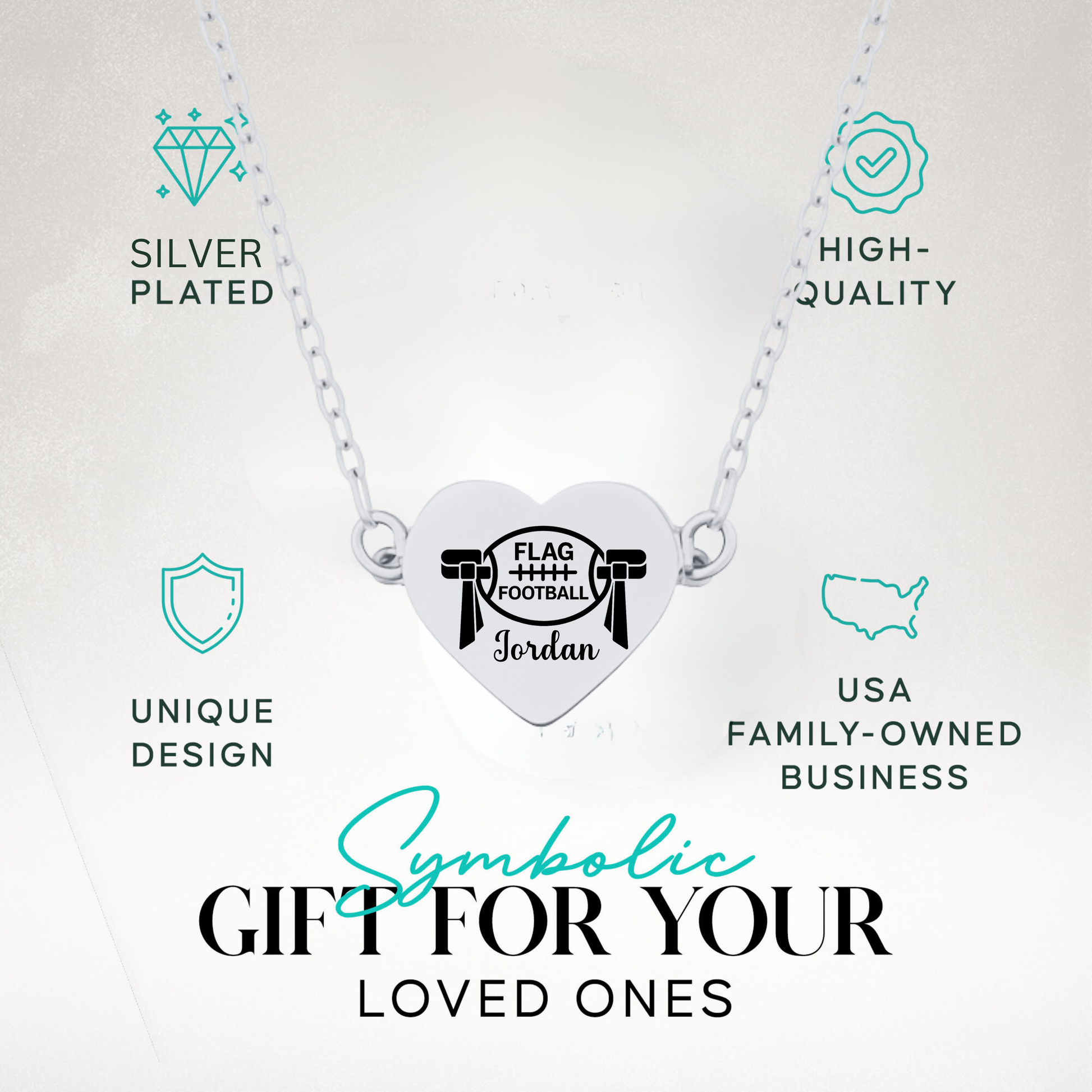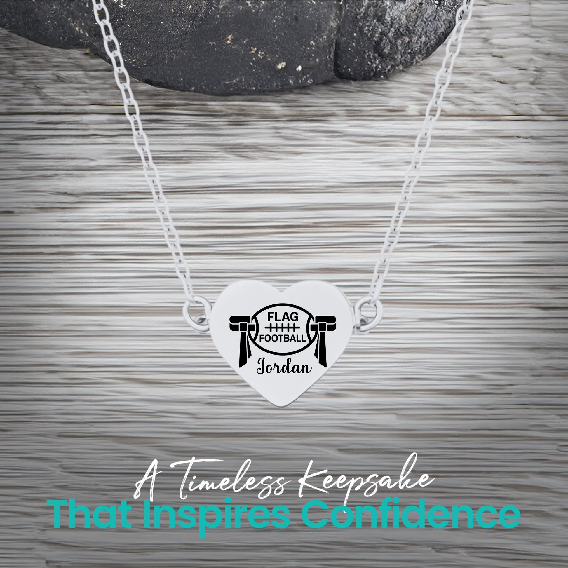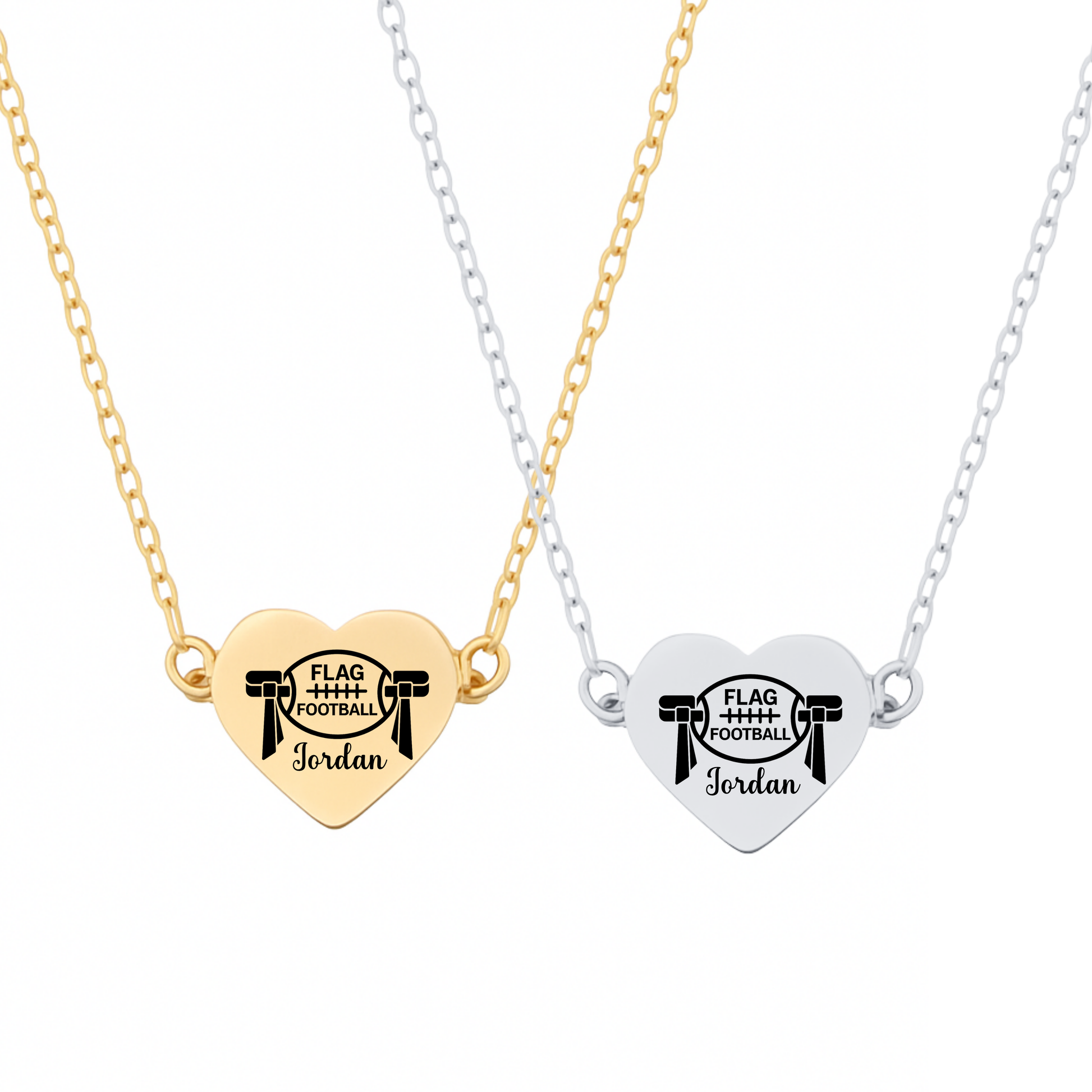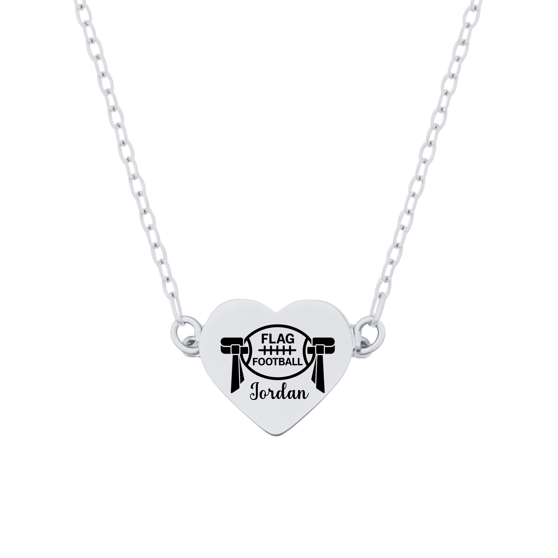 🏈 A heartfelt gift for every flag football player and fan! Show your love for the game with Sportybella’s Personalized Flag Football Heart Necklace. This elegant necklace features a heart-shaped stainless steel pendant engraved with a flag football design and custom name engraving, symbolizing pride, passion, and dedication to the sport.