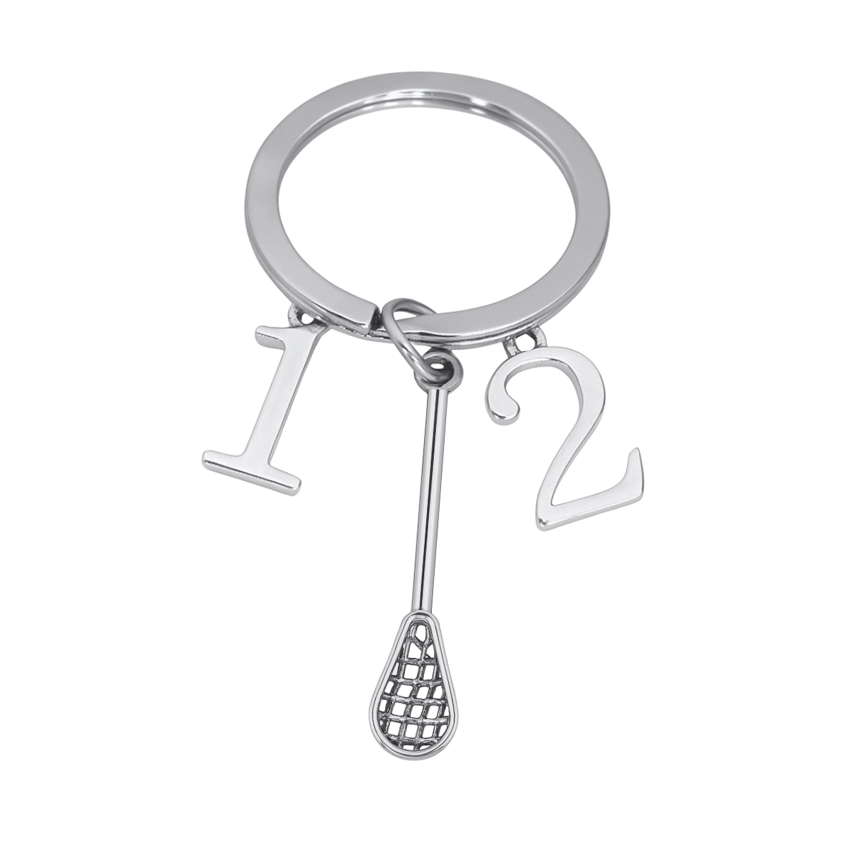 š„Ā LACROSSE KEYCHAIN- Silver Plated Lacrosse Stick Charms on Zipper PullĀ Keychain with numberĀ charm