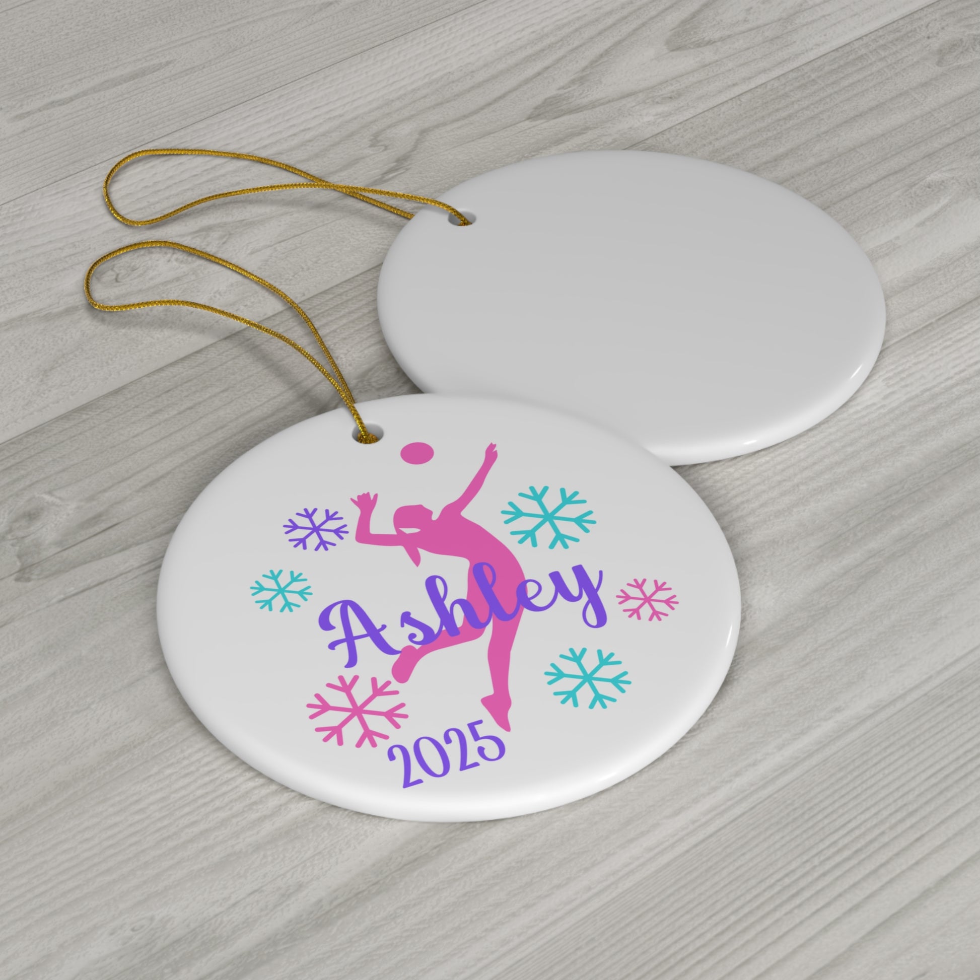 This Ornament is a perfect keepsake for years to come! The design is printed on a flat, round, ceramic ornament 2.84 inches in width. When you order from us, you get the ornament and a gold string loop for hanging. We know you'll love it!