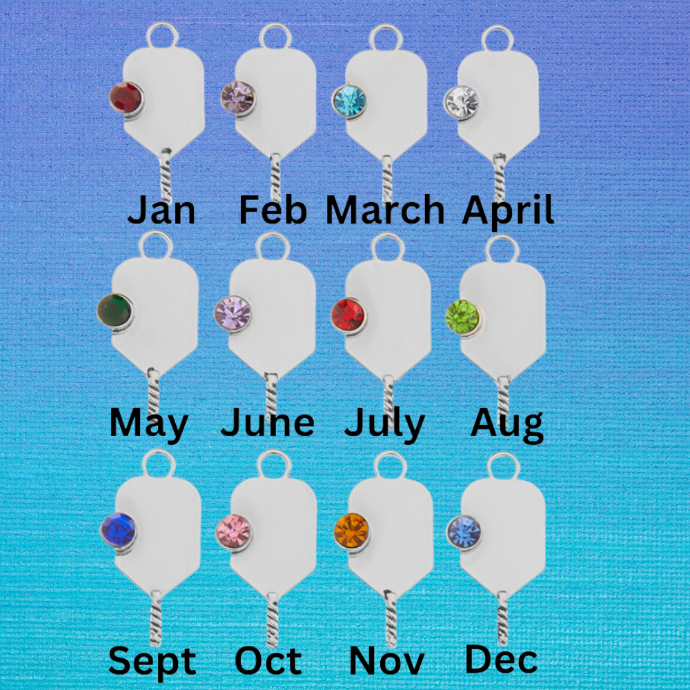 Birthstone Pickleball Earrings, a perfect fusion of personalization and pickleball pride. These stunning earrings are designed to showcase your birthstone while celebrating your love for the game. Each earring features a beautiful birthstone, carefully selected to represent your unique birth month. The birthstone is elegantly paired with a charming pickleball charm, creating a captivating combination that adds a touch of sophistication to any outfit. Crafted with attention to detail and high-quality materials, these earrings are lightweight and comfortable to wear throughout the day. Whether you wear them on the court or as an everyday accessory, our Birthstone Pickleball Earrings are a stylish way to showcase your individuality and your passion for pickleball. Treat yourself or surprise a loved one with these personalized earrings that beautifully symbolize both your birth month and your pickleball spirit.ckleball.