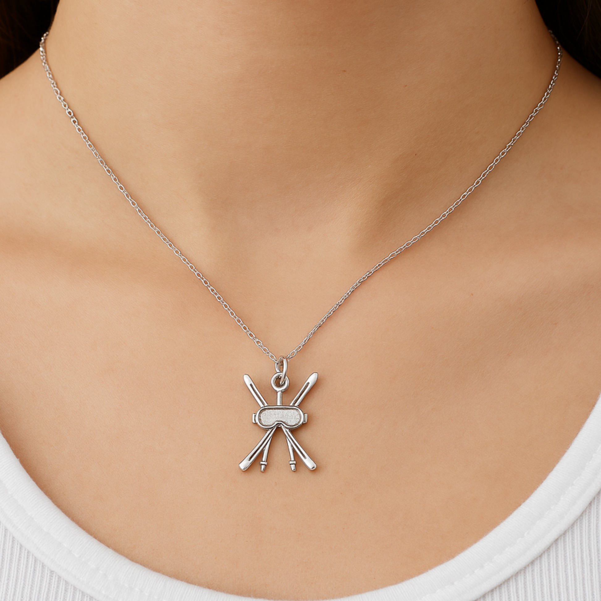 Add a sporty sparkle to your winter style with this Ski Pendant Necklace. The detailed silver plated charm is perfect for skiers, snow lovers, and anyone who feels at home on the mountain. Wear it from the slopes to après ski adventures and show your passion wherever you go.
