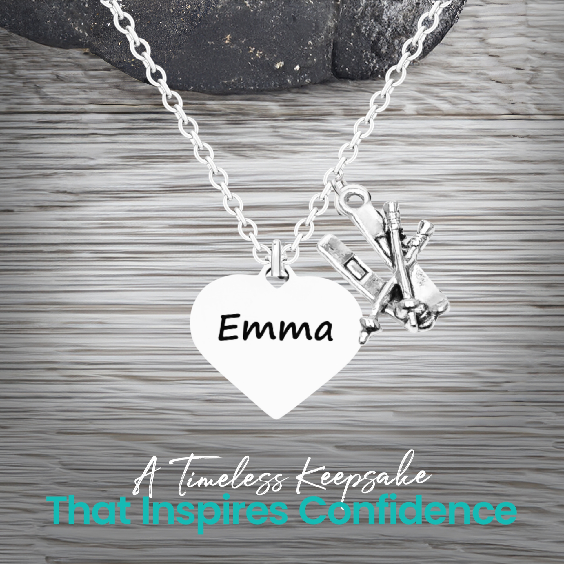 Personalized Ski Necklace – Custom Name Heart Pendant with Love to Ski or Skier Charm | Sportybella