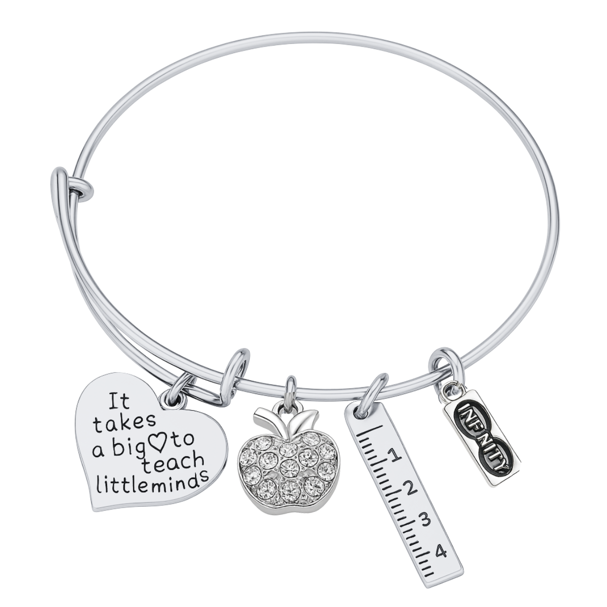 ADJUSTABLE- Teacher bangle bracelet is adjustable. This wire bangle expands to fit perfectly. Bracelet inner diameter:2.36"-2.56",expands easily to fit most wrist sizes