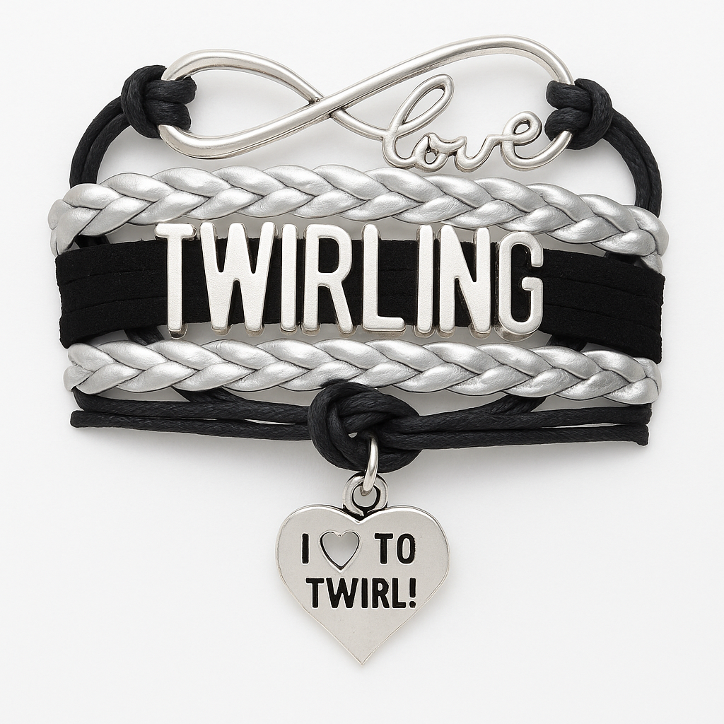 π« Twirling Bracelet β Black & Silver Edition Celebrate the spirit of twirling with this stylish charm bracelet β perfect for majorettes and baton twirlers!