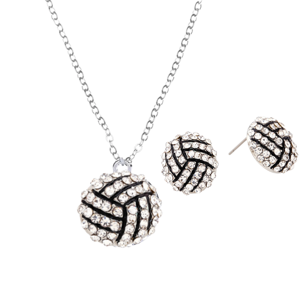 Volleyball Rhinestone Necklace and Earring Set